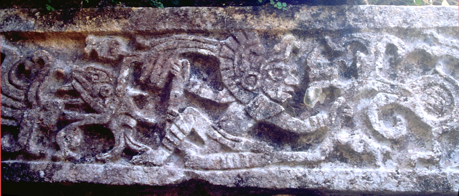 Detail of architrave relief behind Building I