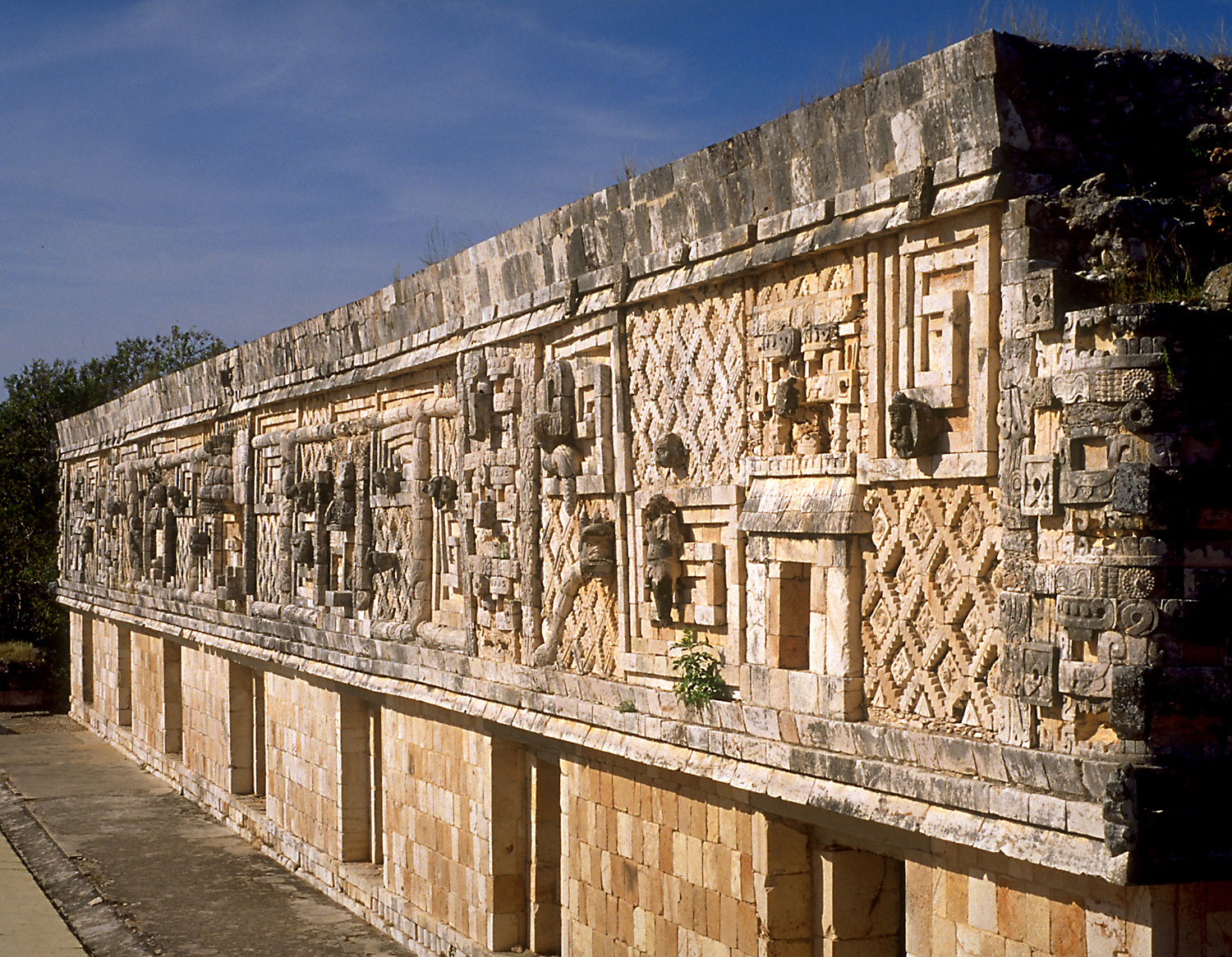 Looking along front facade, showing 3-dimensionality of the elaborate frieze, 3-part medial molding and cornice. The upper beveled section of the cornice is especially tall. Jan. 2001