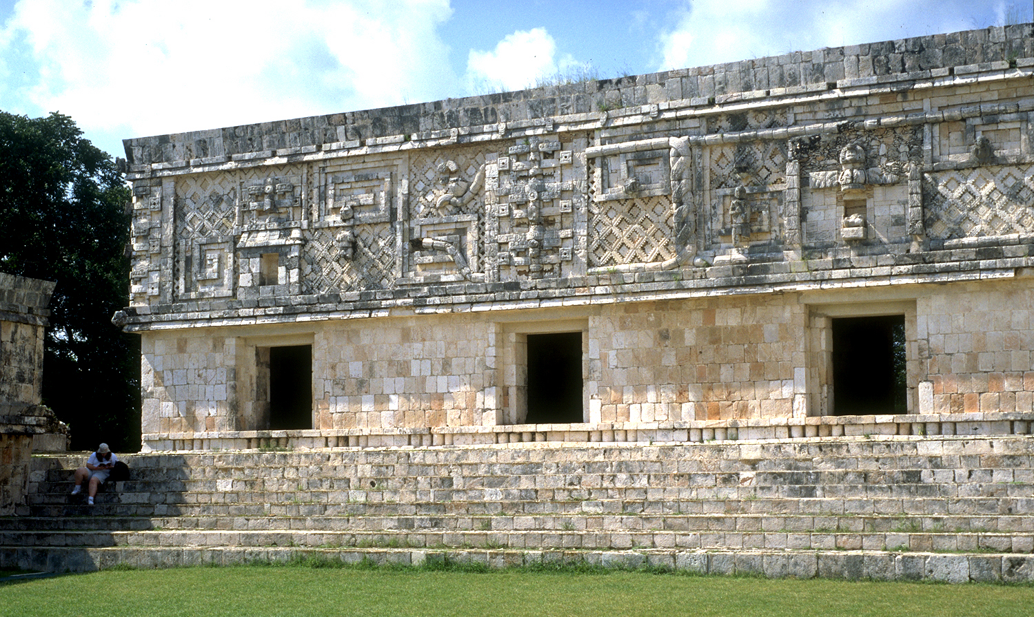 Front facade with doorways 1, 2 and 3; showing end of 2 intertwined serpents between doors 1 and 2.