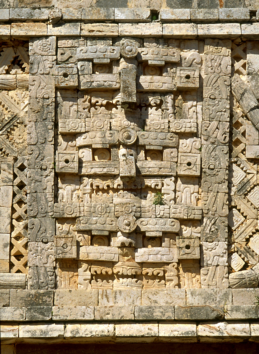 Detail of  same mask stack, largely intact and complete except for broken snouts; showing high quality fitting of mosaic stones.