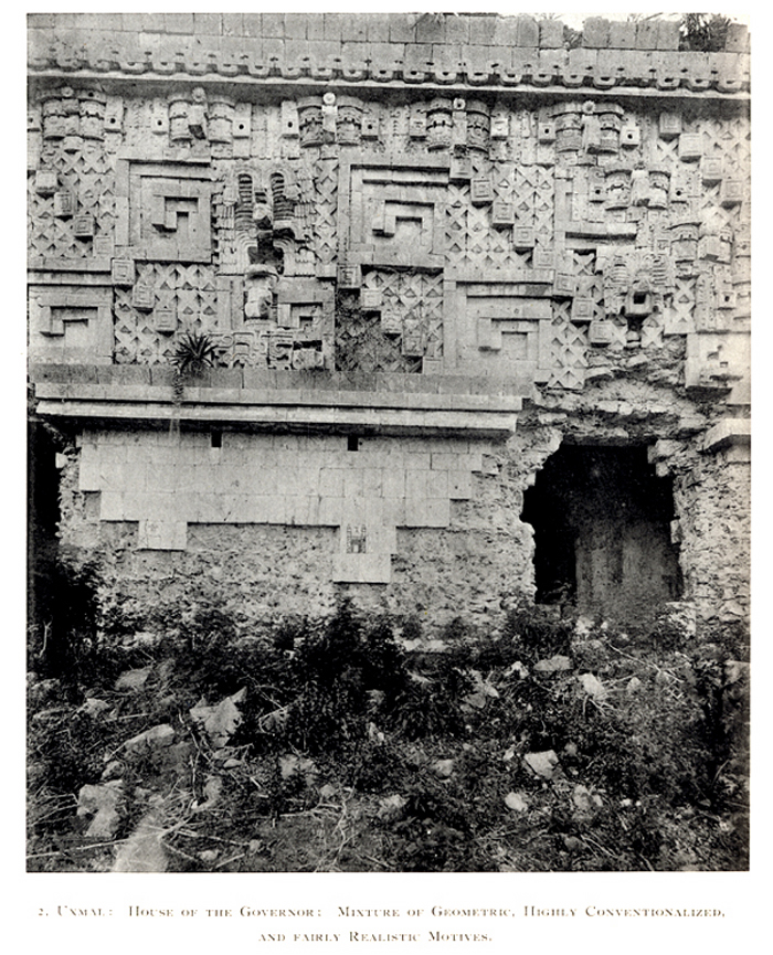 Pl.8, No.2. "Uxmal: House of the Governor: Mixture of Geometric, Highly Conventionalized, and farily Realistic Motives."   1888-1891/1913