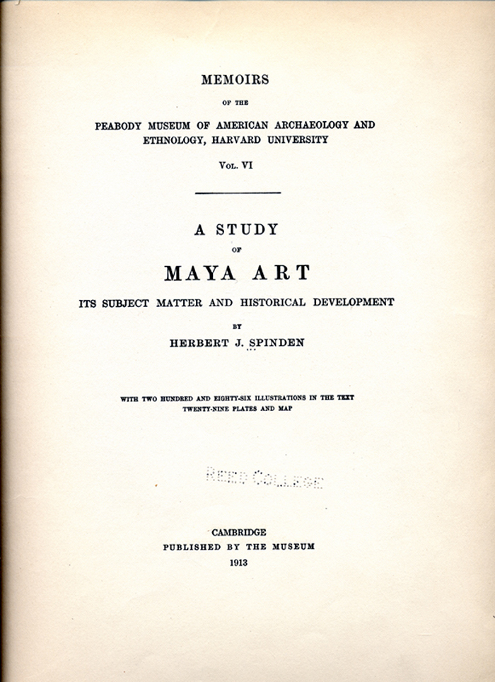 Title page: A Study of Maya Art, Its Subject Matter and Historical Development, Herbert J. Spinden.   1888-1891/1913