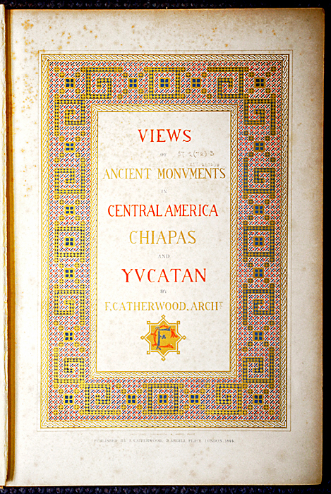 Title page: Views of Ancient Monuments in Central America, Chiapas, and Yucatan, by F. Catherwood, Archt.; "Owen Jones Chromolith. 9, Argyl Place; Published by F. Catherwood, 3 Argyll Place. London, 1844."