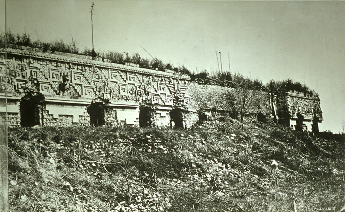 Plates 46. Palais du Gouverneur, a Uxmal". "Principal facade". Right half of panorama of front facade.