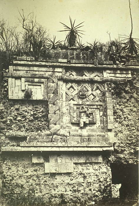 Plate 44. "Palais des Nonnes, a Uxmal". "Bas-relief of the Indian". Detail of front facade of West Building.    1859-60/1862