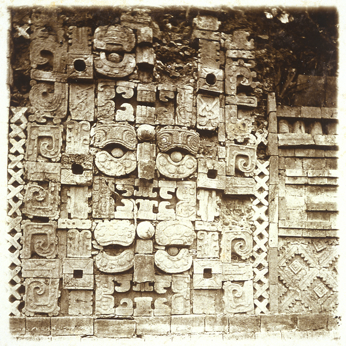 Uxmal: Nunnery Quadrangle, North Building, mask stack over 4th of 11 doorways from left.   ca.1873 (96.R.137-442)