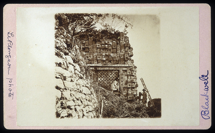 Uxmal: Pyramid of the Magician, north side of Temple IV. Alice Dixon Le Plongeon and unidentified man.   ca.1876 (2004.m.18-b12.70)
