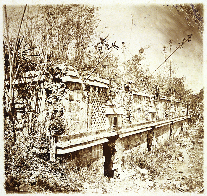 Uxmal: Nunnery Quadrangle, South Building, northeast corner and north facade. Alice Dixon Le Plongeon in doorway.   ca.1873 (96.R.137-450)