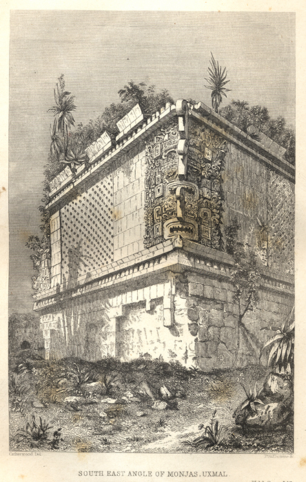 Vol.I, facing p.307: "South East Angle of Monjas, Uxmal. / Catherwood Del., Prud'homme Sc."   1843