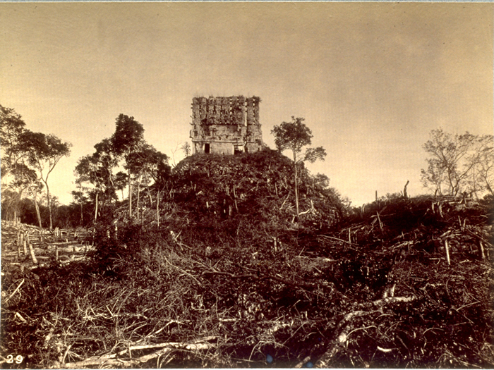 No.29. Labná, Pyramid Temple (El Mirador), front (south) facade with nearly complete roofcomb.       1888-1891