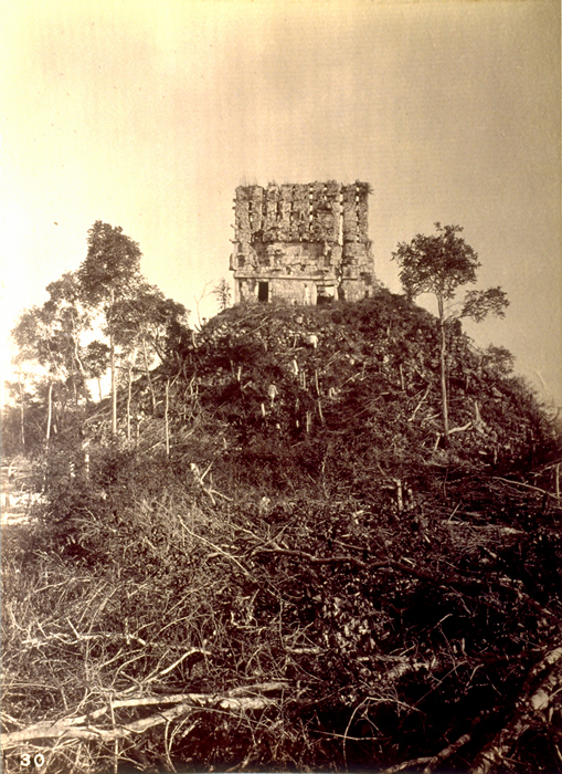 No.30. Labná, Pyramid Temple (El Mirador), front (south) facade with roofcomb.       1888-1891