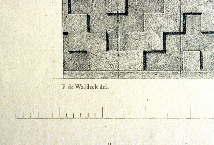 Detail of print above, showing "Drawn by F. de Waldeck".   1838
