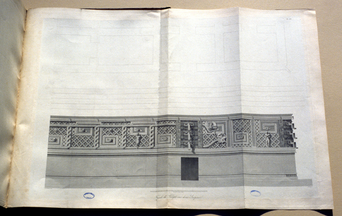 Plate 13. "Facade of Temple of the Serpent" (right half of main facade of West Building, the Nunnery).   1838