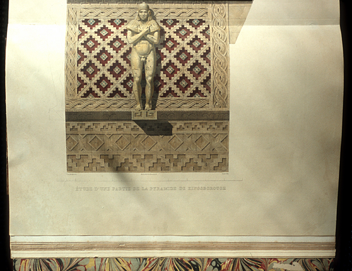 Lower page from the more elegant version with color plates. This image slightly curved because the book was purposedly not pressed flat for this photograph. Courtesy Library, Special Collections, American Museum of Natural History (RF-96-4).    1838