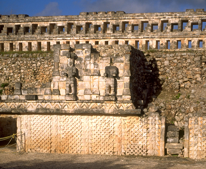 Figure at right is missing its head, but figure at left retains head, headress and surmounted mask.       Jan. 2001