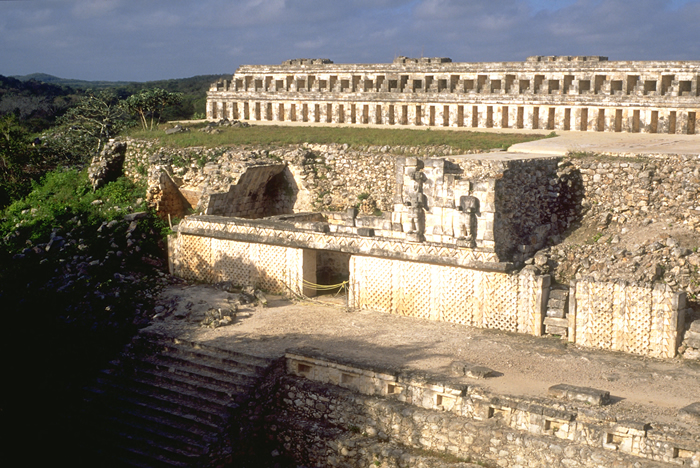 Back of Codz Poop (sometimes considered a separate building) with roofcomb, restored 1991, over solid central core, wide central doorway.  Jan. 2001