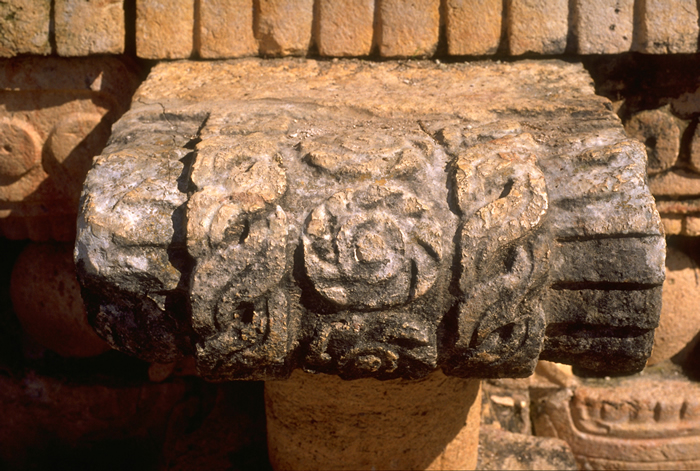 Ornate roll-like eyebrow level spool, used as upper step above snout.     Jan. 2002