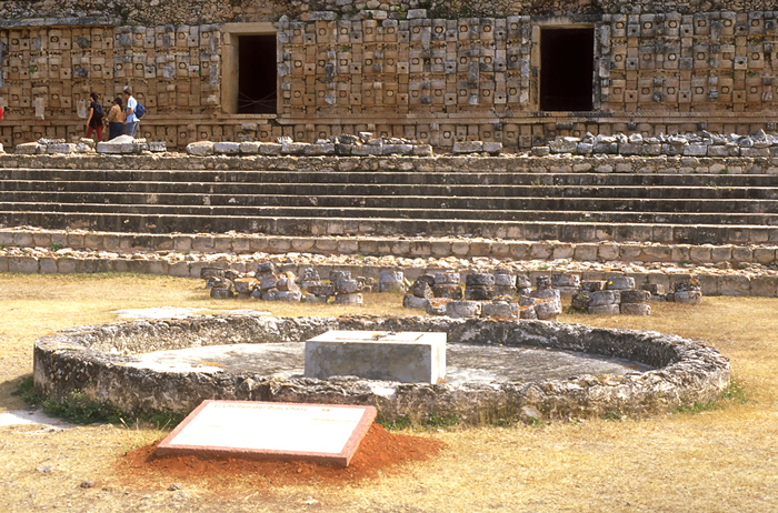Chultune with modern cap, INAH plaque in front.       Jan. 2001