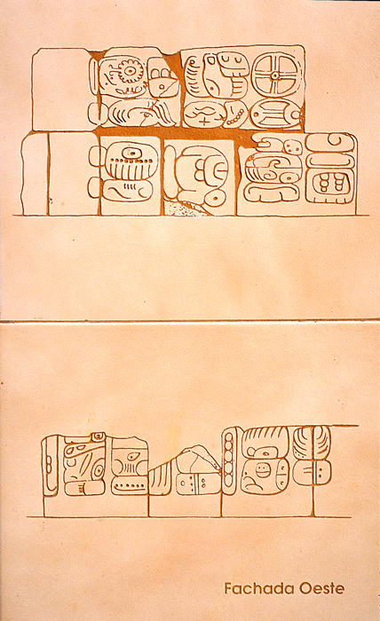 Detail of plaque in photo at left; glyphs from west face.   Jan. 2001