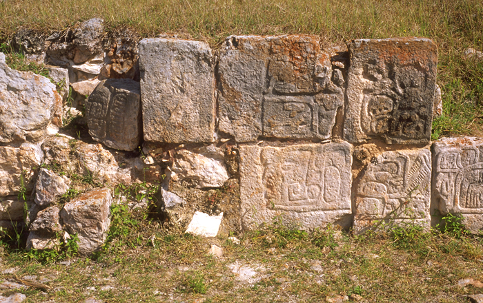 Glyph stones of west side of altar (left to right sequence no.3).    Jan. 2002