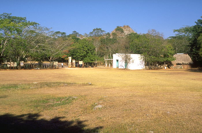 Entry to half of site on east side of modern highway. The Great Pyramid, in the distance, is on west side of highway.      Jan. 2001