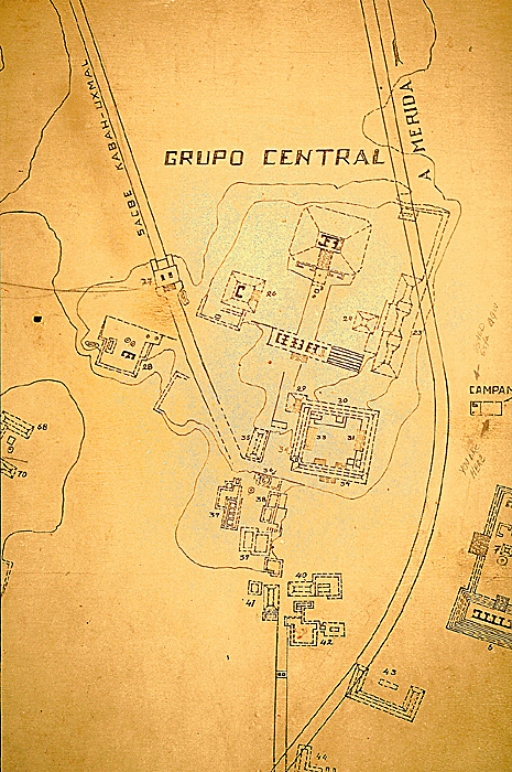 Detail of official 1968 INAH map, Great Pyramid near top.