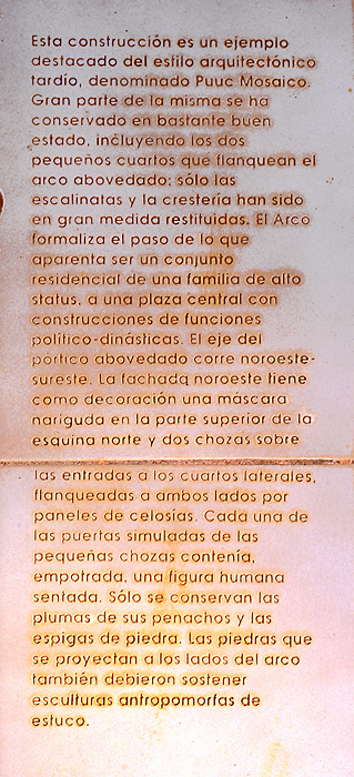 Detail of INAH plaque above; Spanish description.       Jan. 2003