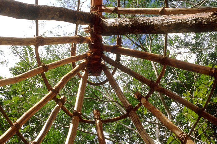 Characteristic transition from straight roof to apsidal end, showing end of ridgepole.            Jan. 2002