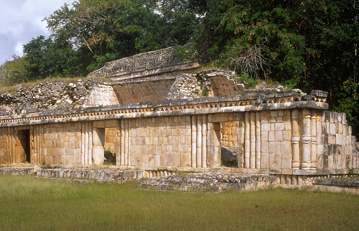 Recent photo of same area as in photo at left; showing facade at right reconstructed 1991-1992.       Jan. 2002