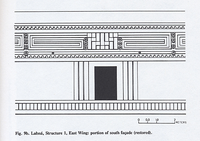 "Labná, Structure 1, East Wing; portion of south facade (restored)."