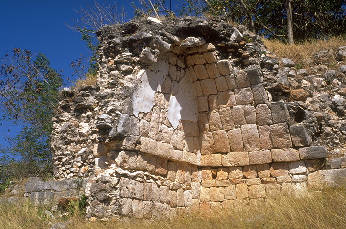 Same largely collapsed vault, showing rare example of well preserved plaster even though exposed to weather.       Jan. 2001