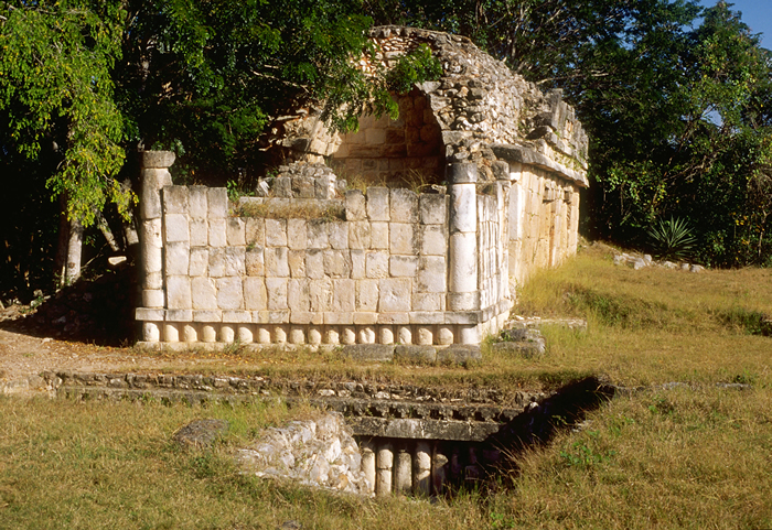 Open top of staircase in front of east structure.       Jan. 2002