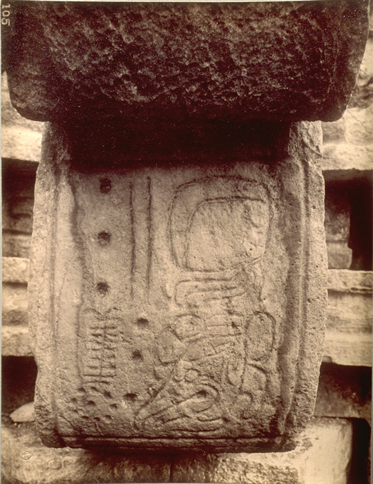 1888-1891. Earliest photograph recording glyphs in front of snout above. The date is usually interpreted as equivalent to A.D.862.