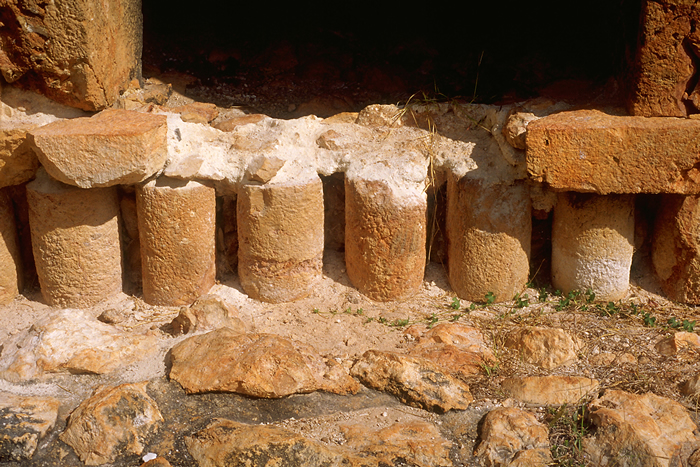 Colonnette base under narrower doorway at left.       Jan. 2002