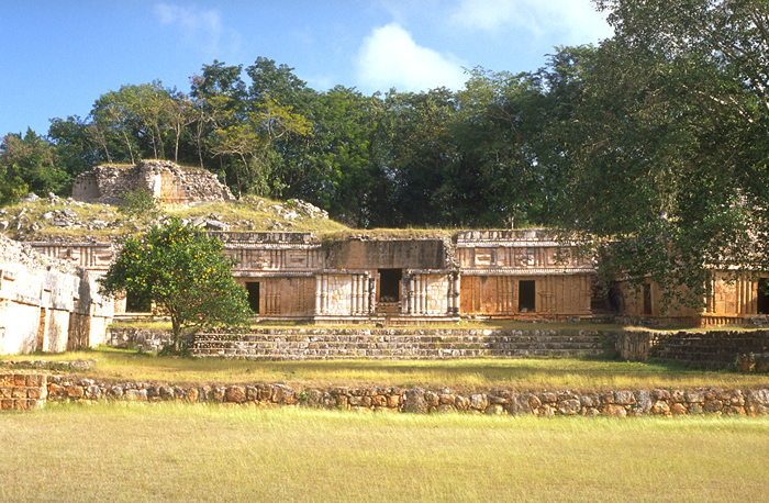 Recent photo showing cleared area, surviving portions and reconstructed portions (cf.1888-91 photo at left).       Jan. 2002