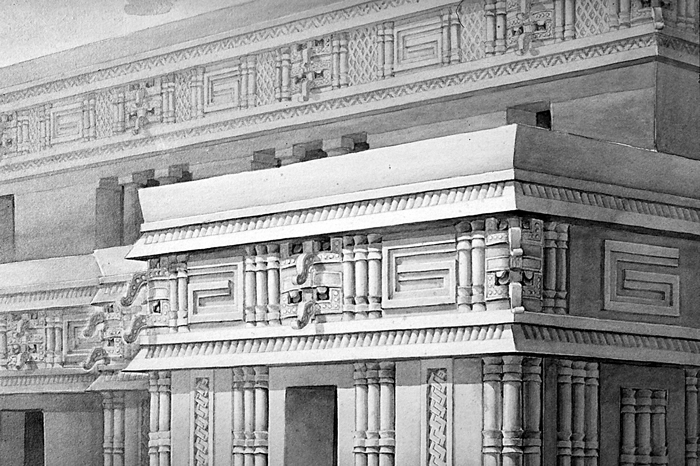 Watercolor reconstruction drawing by Tatiana Proskouriakoff, 1946; scanned from 35mm slide of the original watercolor drawing. Reproduced Courtesy of the Peabody Museum of Archaeology and Ethnology, Harvard University.