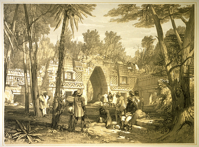 Aquatint published in Frederick Catherwood, Views of Ancient Monuments in Central America, Chiapas, and Yucatan, 1844, based on Catherwood’s 1839-42 on-site drawing. This image scanned from a 35mm slide taken from a copy in the AMNH (RF-13-K). Reproduced Courtesy of The Division of Anthropology, American Museum of Natural History.