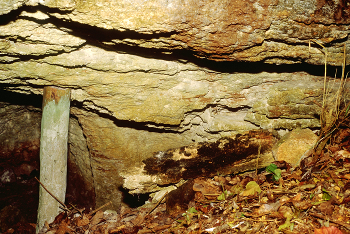 Sayil. Interior of partially collapsed chultune near Pyramid Temple. Jan. 2001 (flash)