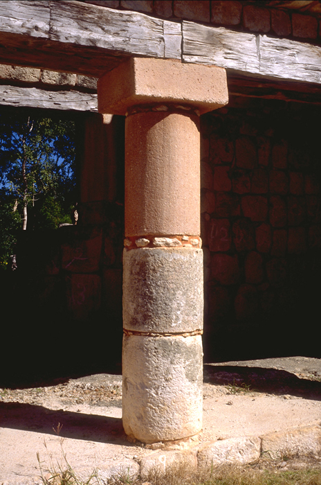 Right column, new upper drum and capital are identified by contrasting stone.       Jan. 2003
