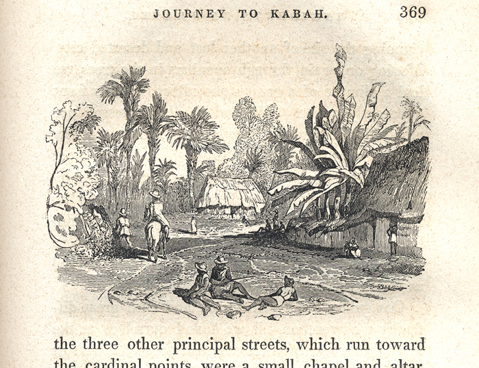 1843. Street near Kabah with typical Yucatec domestic huts.