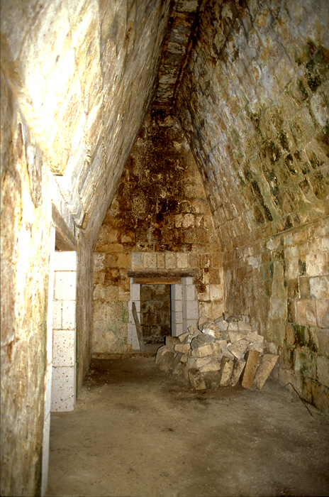 Large central back room; doorway into front room at left, looking north to endwall with doorway into unusual, small side room at end.