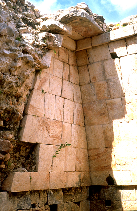 Close-up of corner in photos at left, showing high quality of stone, cutting, surfacing, and fitting.       Jan. 2001