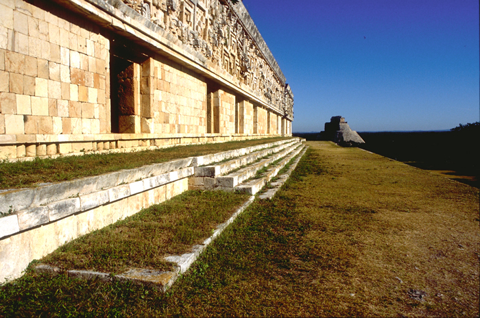 Looking northeast along southeast face of Governor's Palace; showing short flight of stairs from terrace on top of Governor's House Platform to top of tiny terrace directly in front of Palace itself. Also showing the subtle side extension on each side of this short flight of stairs.       Jan. 2003 (24mm lens)