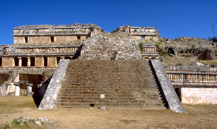 Sayil, Great Palace. Grand staircase and abutments. The bottom flight was well preserved and restored 1953-62; upper flights cleared.