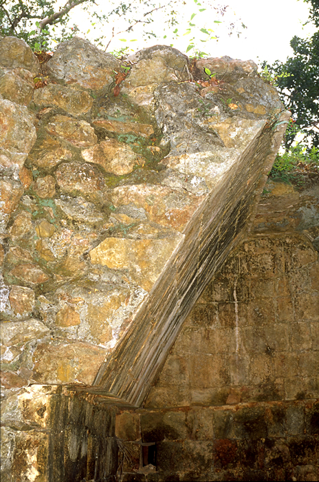 Same surviving vault in profile, showing large, deeply embedded facing stones.      Jan. 2001