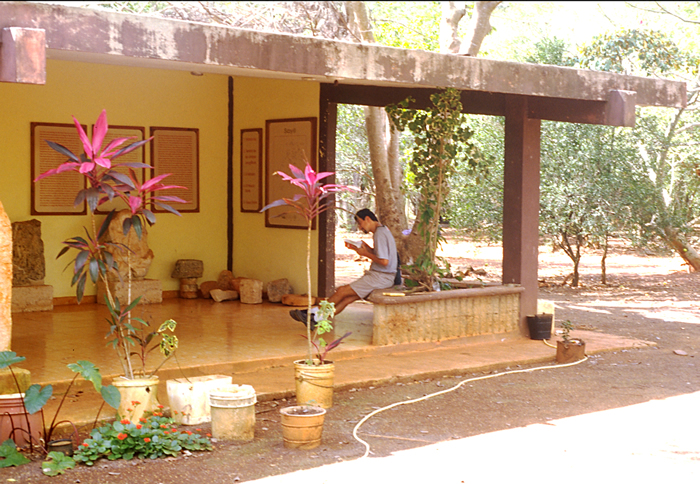 Ticket office, with signs and small display.       Jan. 2002