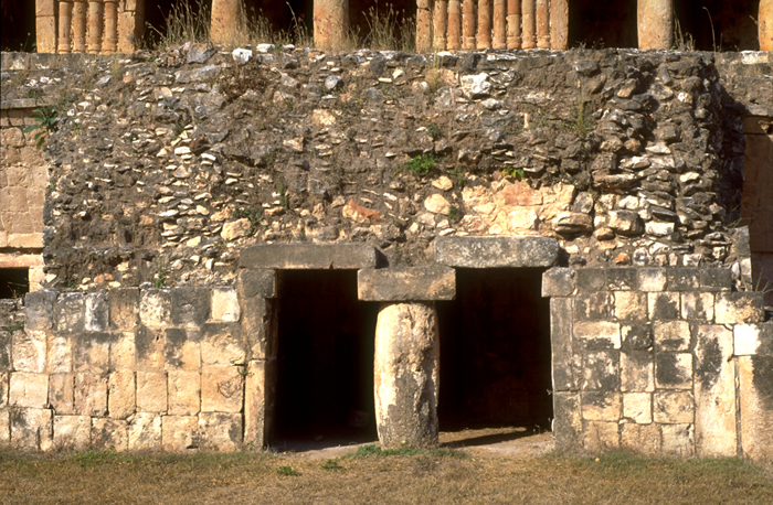 Single column doorway, only example at Sayil, in center of ground level facade.       Jan. 2001