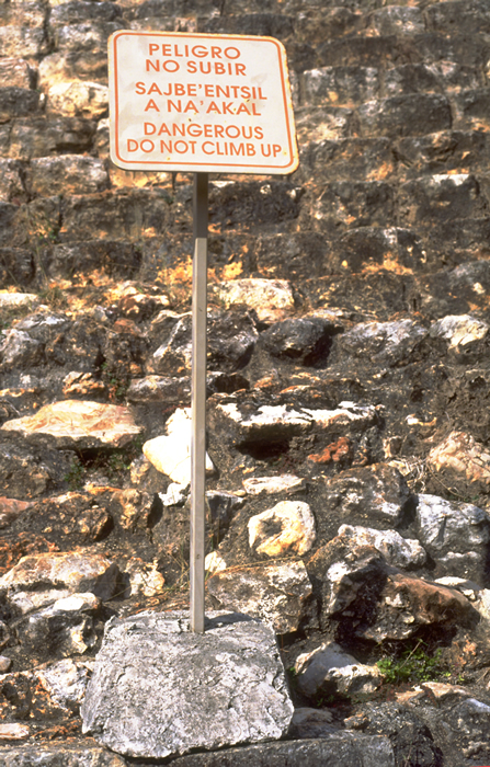 "Dangerous Do not Climb Up" sign at base of unrestored stairs.      Jan. 2001