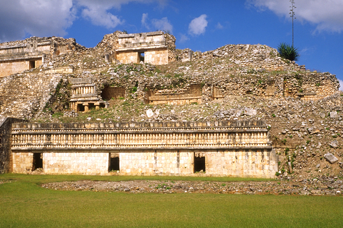 Standing remains of mid and upper-levels suggest facades would have been similar to those on left side of staircase.       Jan. 2002