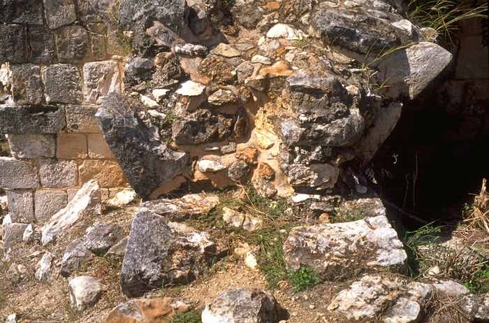 Front to back cross section of middle wall, supporting vaults of front room at left, back room at right.       Jan. 2002